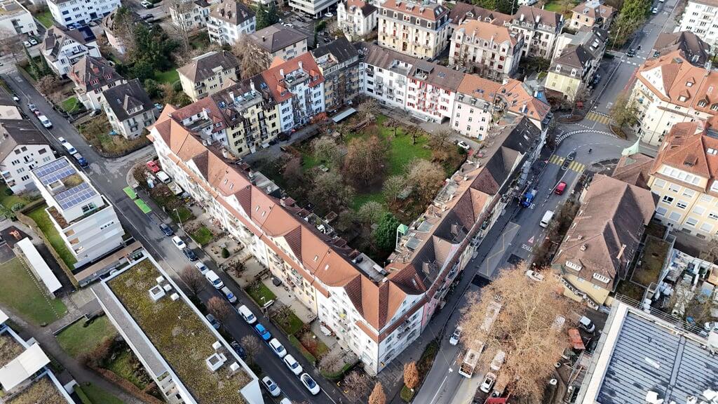 Luftaufnahme vom «Budelehof» im Luzerner Moosmattquartier.