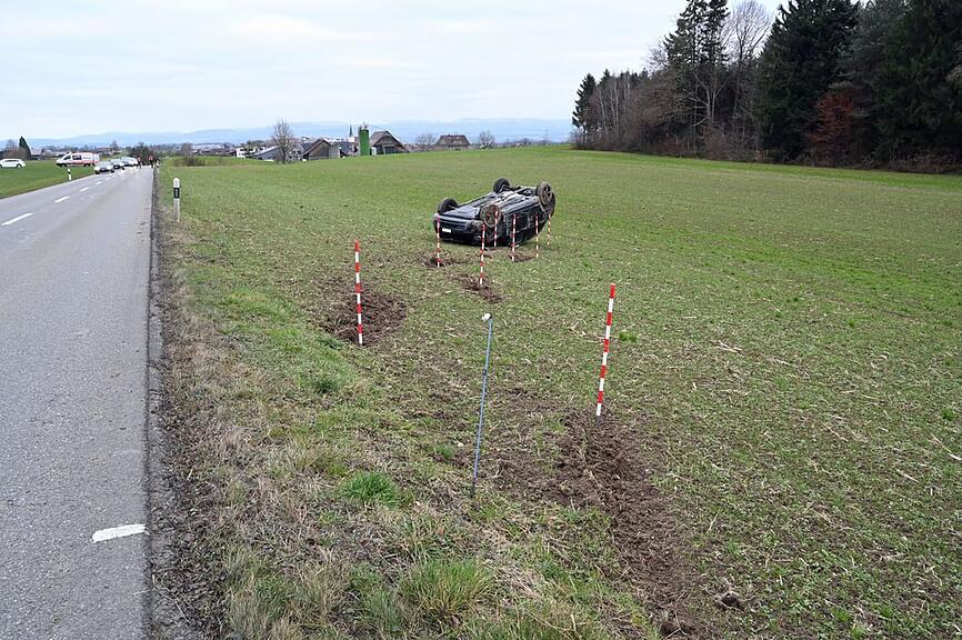 Ein spektakulärer Selbstunfall einer alkoholisierten Autofahrerin hat sich am Dienstagnachmittag in Hohenrain ereignet. Die 48-Jährige überholte gegen 14.40 Uhr zwischen Unterebersol und Ottenhusen ein anderes Auto, wobei es zu einer Streifkollision kam. Ohne anzuhalten, setzte sie ihre Fahrt fort. Kurz darauf geriet sie auf der Sinserstrasse in einer Linkskurve in eine Wiese, kam ins Schleudern und überschlug sich mit ihrem Fahrzeug.