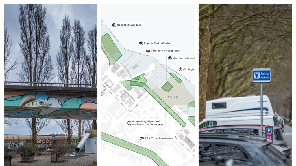 Das linke Seeufer in Luzern befindet sich in einem tiefgreifenden Wandel: Zwischen dem Inseli und der Kantonsschule am Alpenquai plant die Stadt mehrere Projekte zur Steigerung der Aufenthalts- und Lebensqualität. Vertreterinnen und Vertreter der Stadt – unter anderem Stadträtin Korintha Bärtsch (Grüne) – informierten am Donnerstagabend die interessierte Quartierbevölkerung und das ansässige Gewerbe über den aktuellen Stand und die nächsten Schritte.