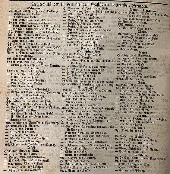 Der Herkunftsmix hat sich im Laufe der Zeit verändert. Das zeigt ein Blick in die «Luzerner Zeitung» von 1856. Das Blatt listete damals täglich die Namen der Touristen auf, die in Luzerner Hotels logierten. So erfahren wir, dass ein «Graf Rothkirch mit Familie aus Böhmen» im «Schweizerhof» residierte. Im selben Haus wohnten «Madame Wagner aus Hamburg» und «General von Dannenberg mit Familie aus Russland». Wohl etwas bescheidener war das Reisebudget von «Miss Hawkins aus England» in der Pension Aeschmann.
