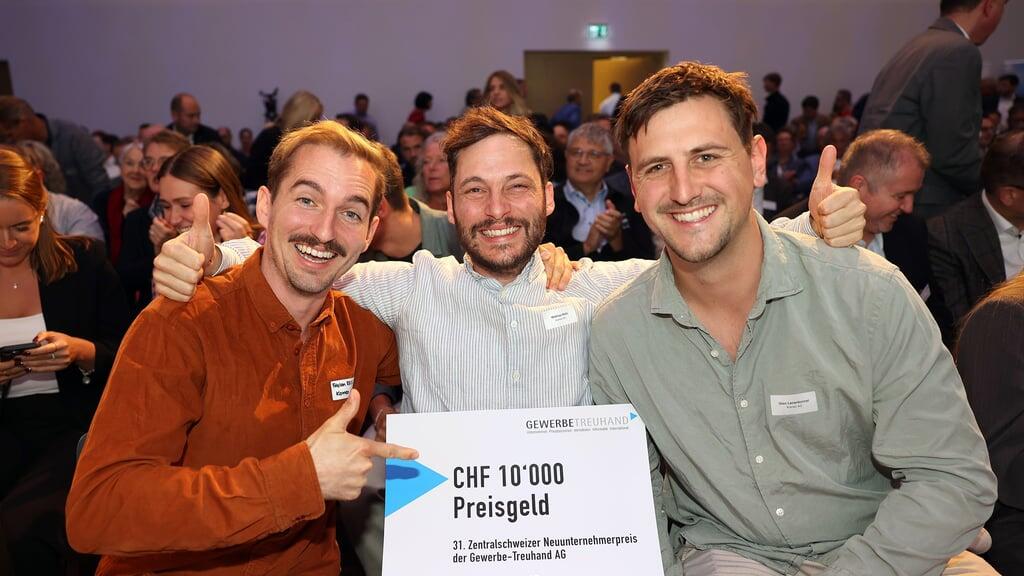 Jedes Jahr würdigt die Gewerbe-Treuhand mit ihrem Zentralschweizer Neuunternehmerpreis den Pioniergeist hiesiger Firmengründer. Die neueste Auflage am Dienstagabend in Luzern hatte es in sich. Anders als bisher beinhaltete die Preisverleihung ein Live-Voting, das nicht nur die Jury einschloss, sondern auch das Publikum via QR-Code. Moderiert wurde die Veranstaltung von Viviane Speranda und musikalisch wurde das Ganze von Andy Wolf untermalt. Mit knappem Vorsprung wurden die Gründer des Start-ups Komeo zu Gewinnern gekürt. Mit ihrem alkoholfreien Erfrischungsgetränk wollen sie die Apéro-Kultur der Schweiz bereichern.