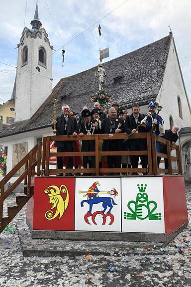 Unerhört! Maskenbrüder, Fidelitas und Wey-Zunft entern am Schmudo-Vormittag den heiligen Fritschibrunnen – natürlich erst nach dem Fötzeliräge.