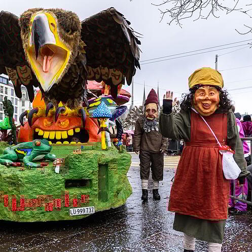 Um 14 Uhr folgt der nächste Höhepunkt der noch jungen Fasnacht 2026: Über 40 offizielle Nummern und dazu viele wilde Darbietungen ziehen vom Luzernerhof zum Helvetiaplatz.
