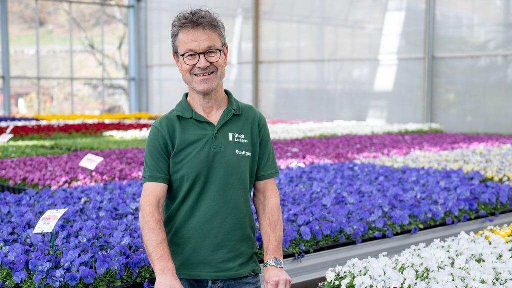 Sonnenstrahlen fallen durch die Glasscheiben der Gewächshäuser der Luzerner Stadtgärtnerei im Ried. Es herrscht Hochbetrieb. Hier werden momentan die unzähligen Stiefmütterchen und Hornveilchen vorbereitet, die im Frühling die Luzerner Plätze in ein Blütenmeer verwandeln.
