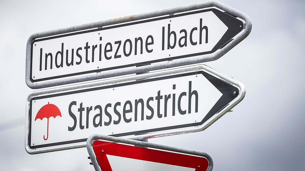 Neuerdings weist ein offizielles Verkehrsschild im Gewerbegebiet Ibach den Weg zum Strassenstrich. Der rote Schirm ist das Symbol der Sexarbeitenden.
