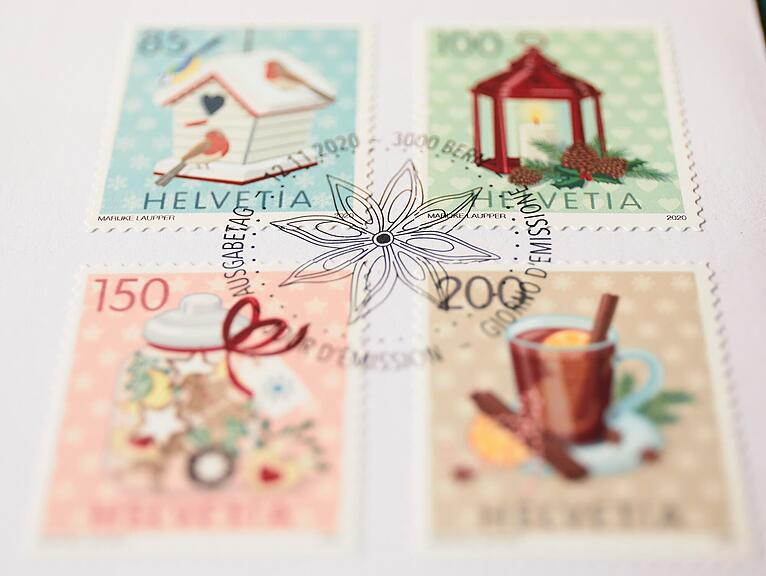 Die am Donnerstag von der Schweizerischen Post offiziell vorgestellten Weihnachtsbriefmarken kommen aus Luzern. Genauer gesagt entstammen sie der Hand der Luzernerin Marijke Laupper. Die 45-jährige Illustratorin und Polydesignerin 3D entwarf die mit Glühwein, Guetzli, Laterne und Vogelhaus verzierten Briefmarken. Laupper:
