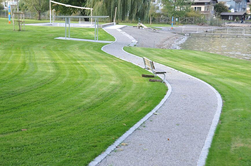 Das ändert sich bald. Der Blick über die Abschrankung zeigt, dass sich auf dem Areal des Strandbades Buochs-Ennetbürgen etwas verändert hat. Ein geschwungener Kiesweg schlängelt sich entlang des Seeufers. Ende Monat sollte er fertig und begehbar sein. Dann wird man ausserhalb der Badisaison tagsüber durchgehend am Seeufer entlang spazieren können. Dafür werden von morgens 7 Uhr bis abends 19 Uhr die Tore des Badiareals geöffnet.