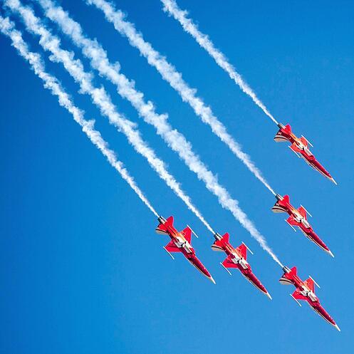 Die Vorführteams der Schweizer Luftwaffe präsentieren der Bevölkerung die Leistungsfähigkeit der Besatzungen und Flugzeuge. Sie sind gemäss dem Eidgenössischen Departement für Verteidigung, Bevölkerungsschutz und Sport (VBS) die Visitenkarten der Schweiz, der Armee und der Luftwaffe im In- und Ausland. Die dazu erforderlichen Trainings finden über das ganze Jahr verteilt über verschiedenen Militärflugplätzen sowie diversen zivilen Flugplätzen und weiteren Trainingsgebieten statt. (stg)