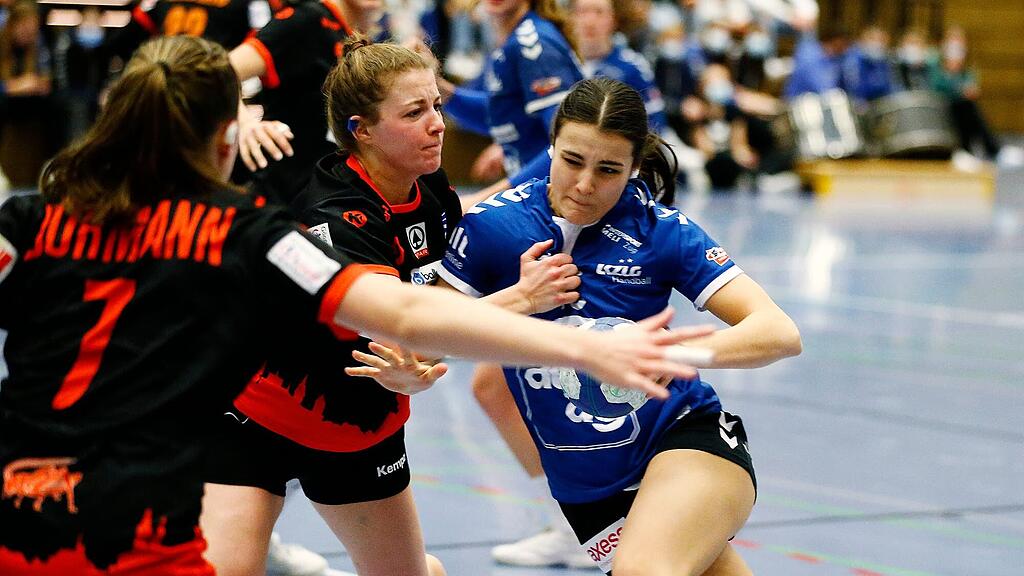 In der Schlussphase scheiterten die Angriffsbemühungen der Zugerinnen (in Blau: Norma Goldmann). (Bild: Stefan Kaiser (Zug, 5. Februar 2022))
