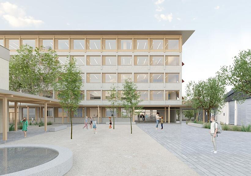 Visualisierung des modernisierten Pestalozzi-Schulhauses.