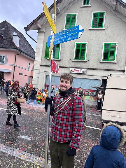 Der weitgereiste Wanderer Elias, ein Heimweh-Trienger aus Luzern. Zu Fuss hier? «Aber hallo?» Er ist hier, um das Lied «Conan »der Quä-Quäger Guuggenmusig Triengen zu hören. Und nur deshalb. Hör doch uf…