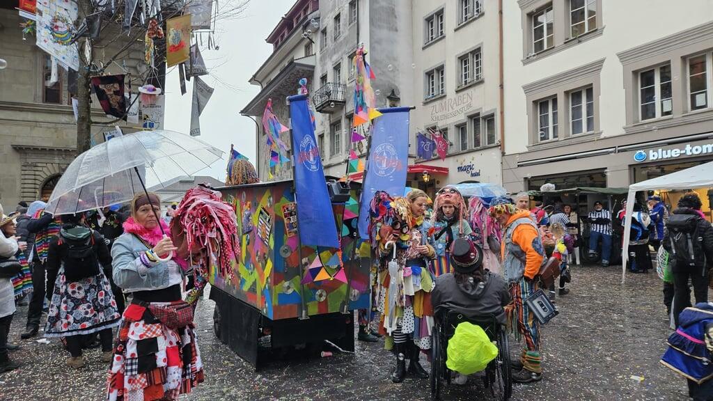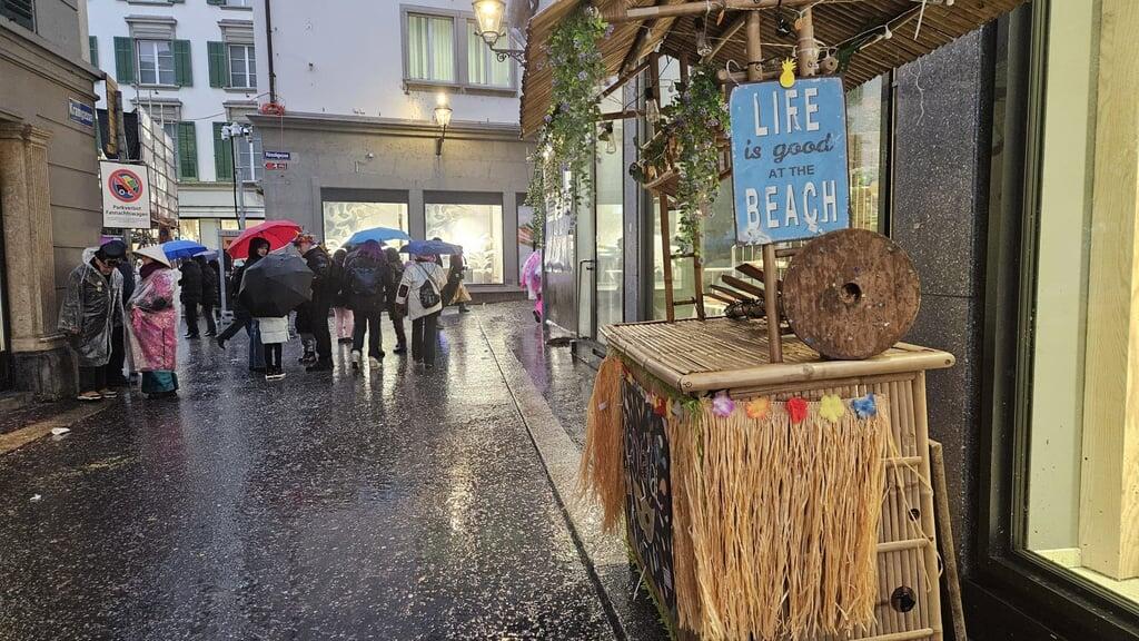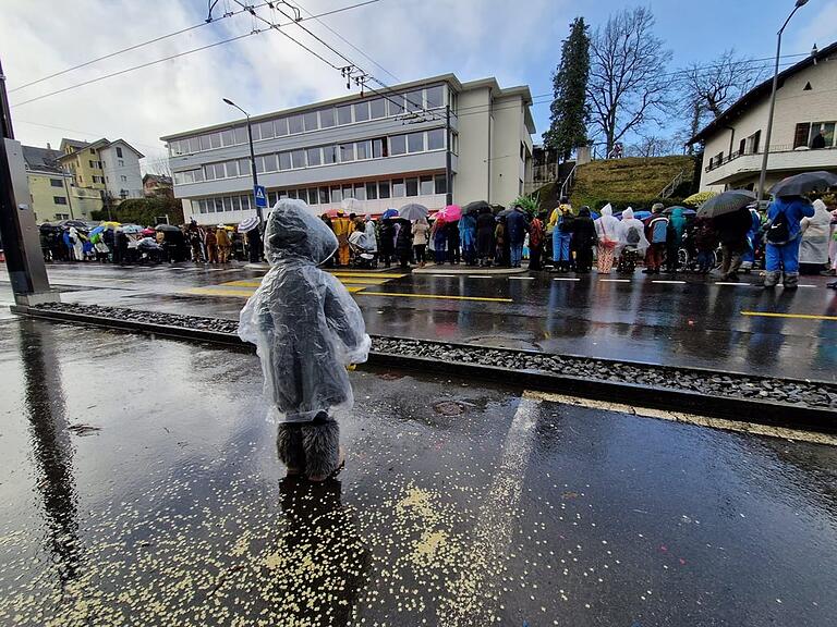 Unsere Reporterin in Ebikon hat sich für den Fall von Regen vorsorglich einen überdachten Platz gesucht. Sie sollte recht behalten. Gerade jetzt kam das Update: «Es regnet wieder. Leute trotzen mit Pelerinen und Schirm. Gemütlich geht anders, aber letzter Fasitag, wir ziehen es durch.»
