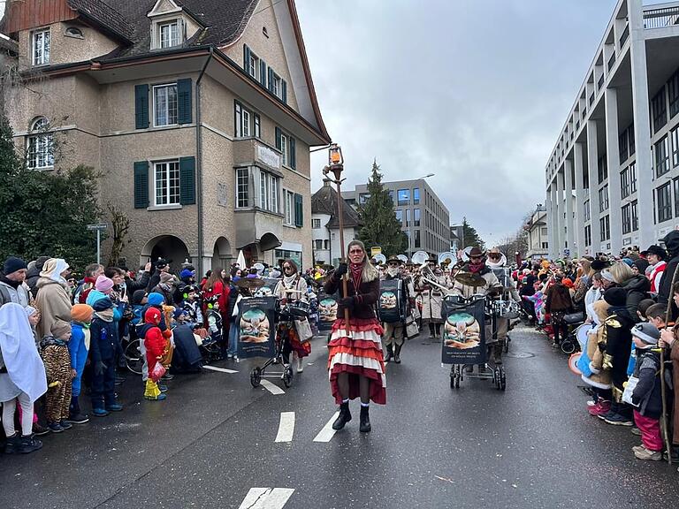 ..., denn die Zäche Chöge bilden den Schlusspunkt des Umzugs für die kleinen Fasnächtlerinnen und Fasnächtler.