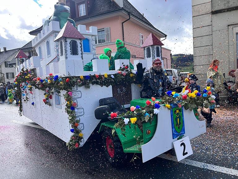 Der Froschkönig auf der Fröschenburg der Fröschzunft Triengen. Ja, es ist etwas froschtig, stimmt.