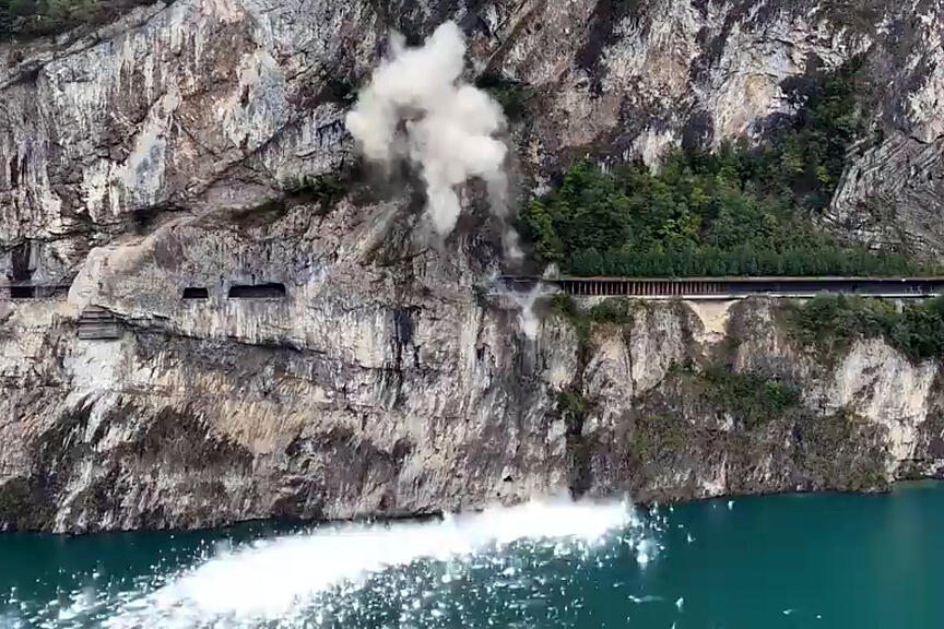 Für die Dauer der Vorbereitungsarbeiten und die Sprengung musste die Axenstrasse A4 zwischen Flüelen und Tellsplatte aus Sicherheitsgründen vollständig gesperrt werden.