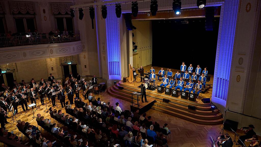 Am Wochenende belebten fünf Musikvereine der Stadt Zug mit klangvollen Auftritten auf verschiedenen Bühnen das Stadtzentrum. Unterstützt durch die Musikschule Zug, wurde dem Publikum Musik vom Feinsten geboten. Den krönenden Abschluss dieses klingenden Ereignisses mit der Bezeichnung «Music on Tour» bildete der Samstagabend im Festsaal des Theater Casinos Zug – mit gleich drei identischen Konzerten.