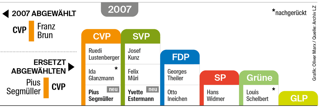 2003 traf es FDP-Nationalrat Karl Tschuppert, 2007 und 2011 mit Franz Brun und Pius Segmüller zwei CVP-Parlamentarier, und vor vier Jahren musste GLP-Vertreter Roland Fischer sein Pult in Bundesbern räumen. Abwahlen aus der Grossen Kammer sind im Kanton Luzern zur Normalität geworden, nachdem sie bei früheren Wahlen die Ausnahme waren (siehe Grafik).
