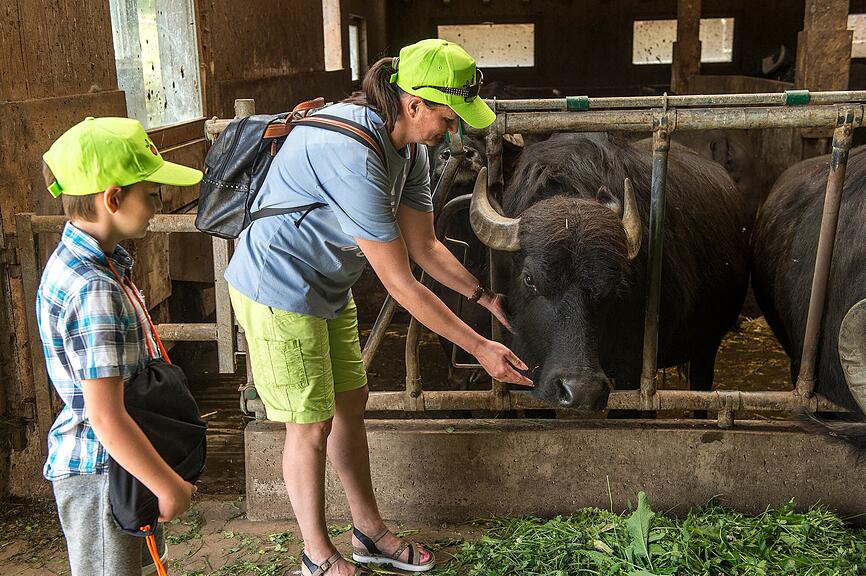 Unsere Zeitung konnte diesen Food-Trail am Freitag testen. Geöffnet ist er ab dem 1. August (siehe Hinweis). Apropos Hinweis – einen gibt es: Die Wasserbüffel stehen auf der 7,5 Kilometer langen Strecke im Zentrum. Die Tour ist nicht anspruchsvoll, notfalls kann man auch mal den Bus nehmen. Zwischen fünf und sechs Stunden dauert das Abenteuer.