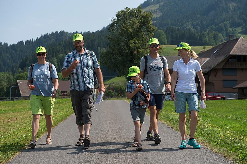 Die Sonne brennt schon am Vormittag auf die trockenen Wiesen in Marbach. Kurzer Kontrollblick auf das Blatt mit den Hinweisen: Wo ist der nächste Posten? Der Weg geht an Wasserbüffeln vorbei, die sich bei der Hitze in den Stall zurückgezogen haben. Dann ist der Posten erreicht. Neben Erklärungen zu einem bestimmten Thema gibt es auch etwas zu essen oder zu trinken. Was und wo, wird an dieser Stelle nicht verraten. Schliesslich ist es eine kulinarische Schnitzeljagd – ein Food-Trail.