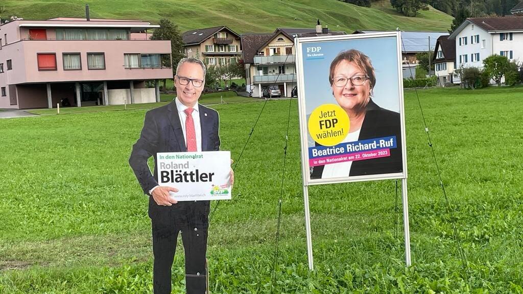 Wahlwerbung in Büren im Herbst 2023. Der Personensteller links wäre künftig nicht mehr ohne Bewilligung möglich.