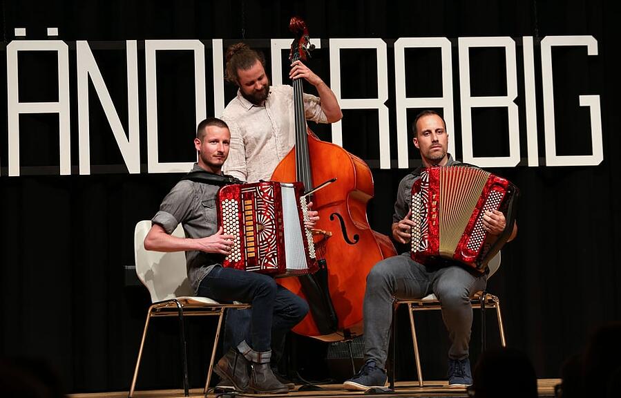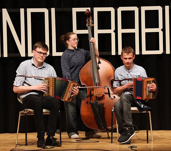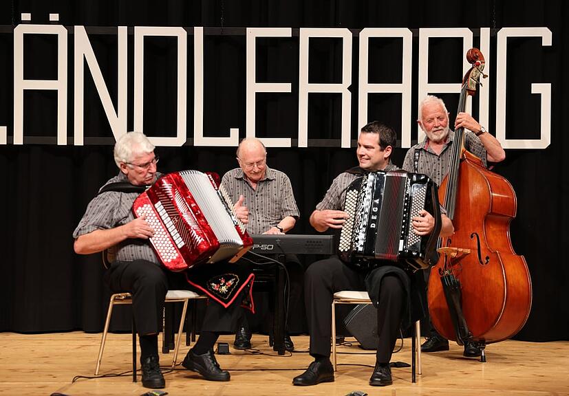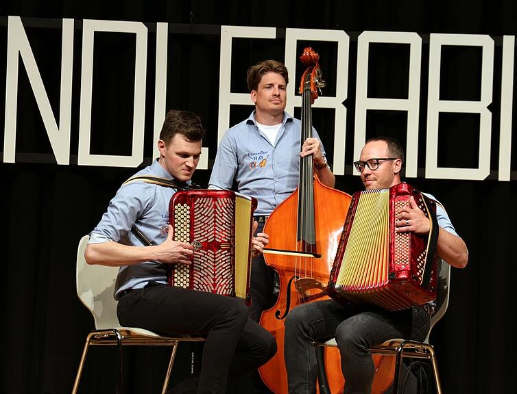 Die Schwyzerörgeli-Jungformation mit Leo Käslin und Dominik Wagner, begleitet von Elin Flück am Kontrabass, eröffnete mit zwei Rees Gwerder-Tänzli das Konzert und bewies eindrücklich, dass da sehr talentierter Nachwuchs unterwegs ist. Das Ländlertrio Fräki-Örgeler mit Patrick Schnider und Thomas Barmettler und Lukas Bircher am Kontrabass zeigte ihre grosse Vielseitigkeit auf dem Schwyzerörgeli und mit dem Akkordeon.