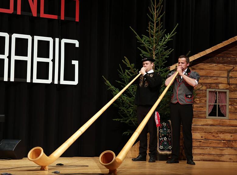 Manuel Odermatt, Hans Graf, Otto Gabriel und Fredy Gabriel sind vier gestandene Musikanten und gaben als Handorgelduett Gheerfällig ihre Vorträge in perfekter Manier zum Besten. Für einen musikalischen Kontrast sorgten Pascal Barmettler und Sandro Christen als Alphornduo Pulverschnee und trugen gleich vier Eigenkompositionen von Pascal vor.
