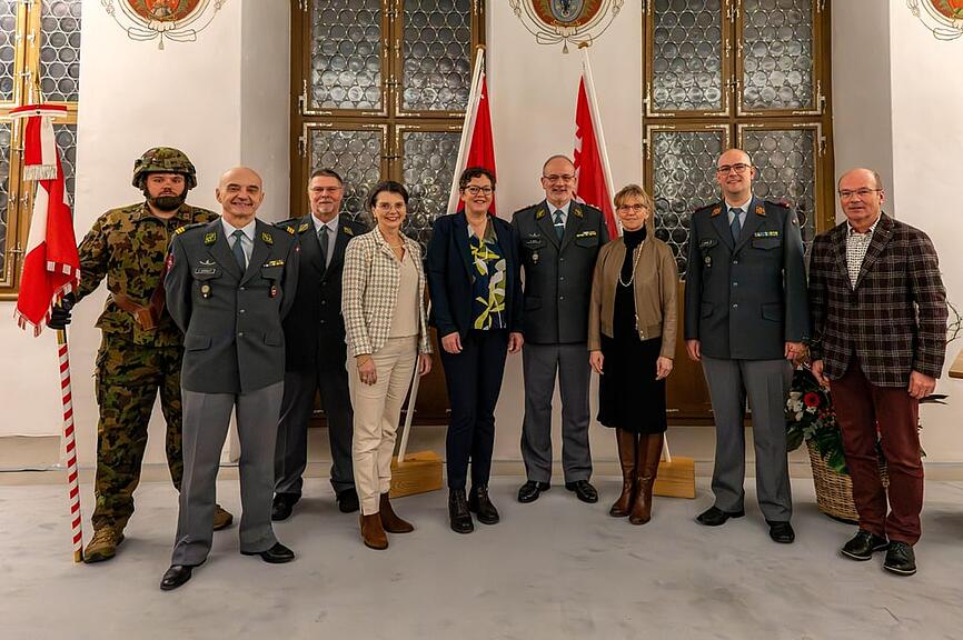Ein besonderer Höhepunkt der Feier war die Entlassung von sechs Offizieren aus der Militärdienstpflicht. Gemeinsam leisteten sie insgesamt 6651 Diensttage, was mehr als 18 Jahren engagierten Einsatz im Dienst der Allgemeinheit entspricht. Diese Zeit stehe für zahlreiche Wiederholungskurse, Ausbildungen, Führungsaufgaben und persönliche Verzichte zugunsten der Sicherheit des Landes. «Der Kanton Nidwalden spricht allen Offizieren und höheren Unteroffizieren seinen Dank für den geleisteten Dienst aus. Der Dank richtet sich ausdrücklich auch an die Angehörigen, die dieses Engagement über Jahre hinweg mitgetragen haben», heisst es dazu in der Mitteilung. Den Beförderten werden viel Erfolg, Umsicht und Freude in ihren neuen Funktionen gewünscht, den Entlassenen Gesundheit, Zufriedenheit und die Gewissheit, einen bedeutenden Beitrag für Land und Kanton geleistet zu haben.