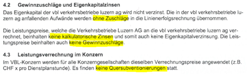 Andreas Windlinger fährt fort: «Gemäss Subventionsgesetz sind in subventionierten Bereichen nur Aufwendungen anrechenbar, die tatsächlich entstanden und für die zweckmässige Erfüllung der Aufgabe unbedingt erforderlich sind.» Überhöhte Preise oder Gewinnzuschläge wie die bei den VBL intern verrechneten Zinsen zählen laut Windlinger nicht dazu.