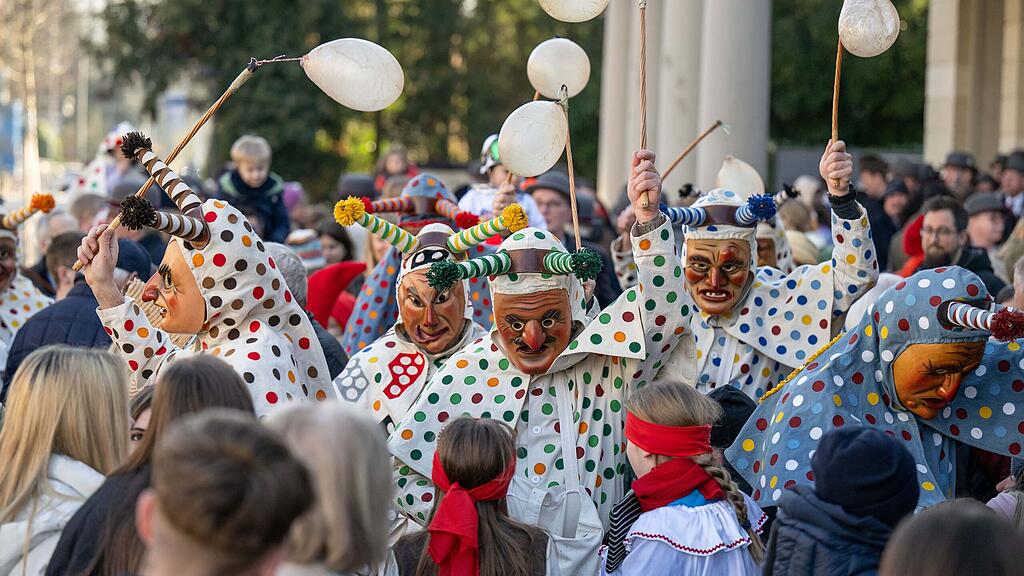 Von der Terrasse des Theater Casinos Zug erklingen am Güdelmontag um 16 Uhr keine kakofonen, schrägen Guggen-Töne. Im Gegenteil: Hier wird harmonisch und sauber musiziert, genauso, wie es die Notenblätter und der Dirigent vorgeben. Während die Blasmusik der Zunft der Schreiner, Drechsler und Küfer – die Trägerschaft des Brauchs – ihre lüpfigen Märsche zum Besten gibt, versammelt sich unten auf dem Platz vor dem Casino und auf der teilweise gesperrten Strasse das Publikum. Es ist der Start des Greth-Schell-Brauchs, dessen Entstehungsdatum auf das Jahr 1721 zurückgeht.