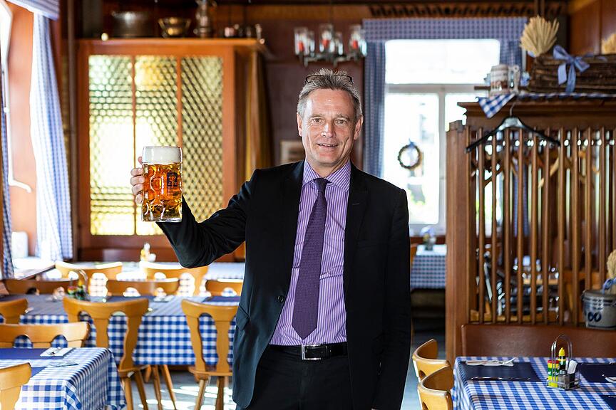 Auch das Restaurant Bären holt das Oktoberfest seit vielen Jahren nach Zug. Dabei verwandelt es sich während drei Wochen jeweils in eine Münchner Wirtschaft. «Auch die Farben werden gewechselt. Während wir normalerweise rot-weiss dekorieren, finden bei uns während des Oktoberfests die ‹Weiss-blauen Wochen› statt, die Farben des Freistaats Bayern», erklärt Stefan Gareis, ein gebürtiger Münchener, der neben dem Parkhotel Zug und dem City Garden Hotel auch für den «Bären» verantwortlich ist. Dabei könne man sogar eine Gemeinsamkeit zwischen Bayern und Zug erkennen. «Beide Wappen sind blau-weiss. Somit harmonieren Zug und Bayern perfekt miteinander.» Dieses Jahr könne das Oktoberfest im «Bären» aber mit einer interessanten Neuerung auftrumpfen. «Wir sind der erste Betrieb in der Schweiz, der original Augustiner Oktoberfestbier vom Fass bekommt», sagt Gareis stolz.