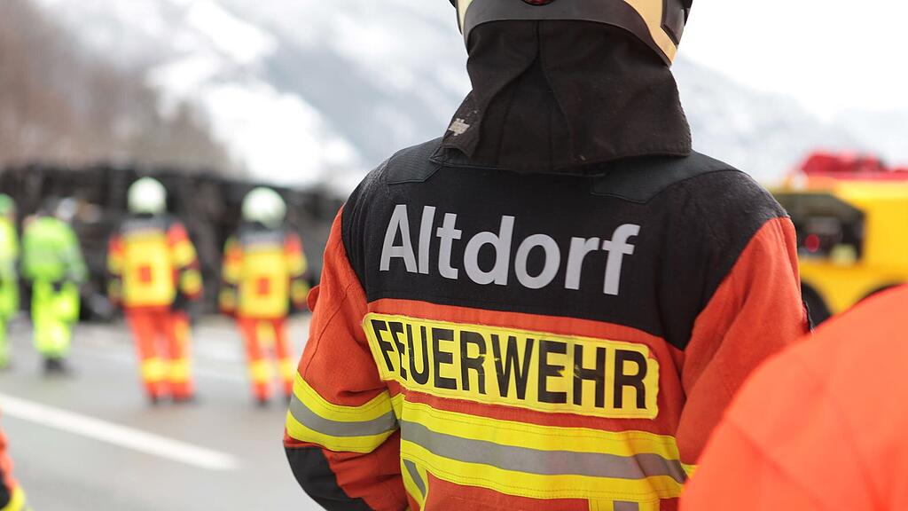 Die Feuerwehr bei einem grossen Einsatz auf der A2. (Florian Arnold / Urner Zeitung)