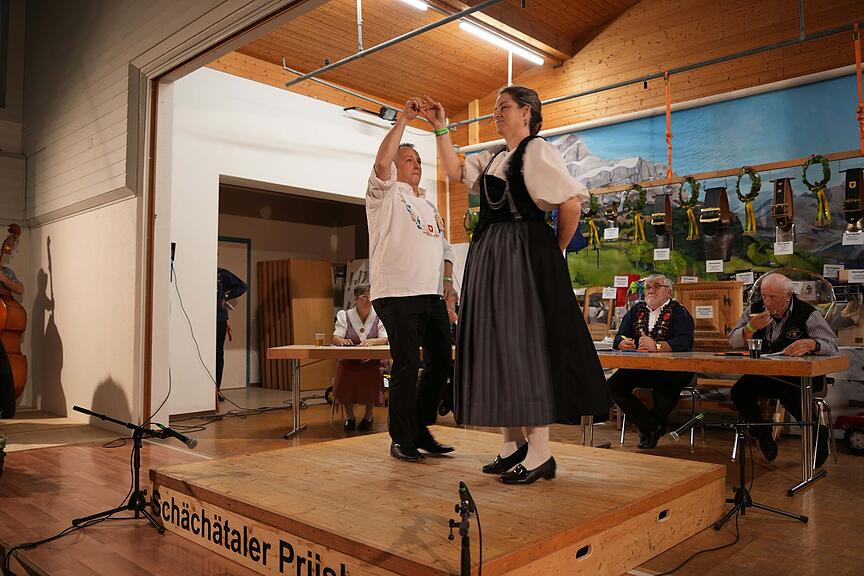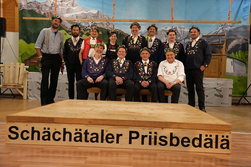 Im Gegensatz zu 2019, als noch vier Frauen mitmachten, wagten sich am 6. Schächätaler Priisbedälä vom Samstag, 25. März, in Spiringen bereits zehn Frauen auf die vergrösserte Bühne der Kreisschule. Das Ländlertrio Rossstockgrüäss, das Jodelduett Rita und Lisbeth und die Gitschätrychler Seedorf sorgten für beste Unterhaltung.