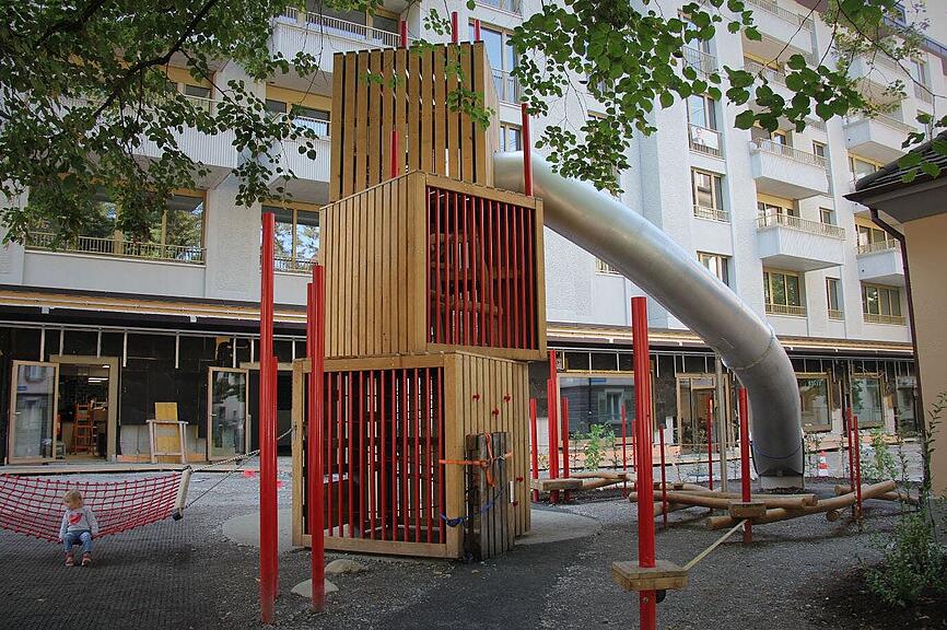 Auch bei den Wohnungen ist der Vermietungsstand sehr gut. Noch vier der 179 Wohnungen sind gemäss ABL frei. Einige Arbeiten sind aber nach wie vor noch in Verzug. Mehrere Ladenlokale sind noch nicht ganz fertiggestellt. Die Gemeinschaftsräume werden in Absprache mit den Bewohnern noch eingerichtet, so die ABL. An der Himmelrichstrasse führt die Stadt Arbeiten aus. Abgeschlossen ist der Umbau des Bleichergärtlis inklusive neuem Spielplatz. Die Kosten von 650'000 Franken teilen sich ABL und Stadt, wie Letztere mitteilt. Hier ein Bild vom neuen Bleichergärtli: