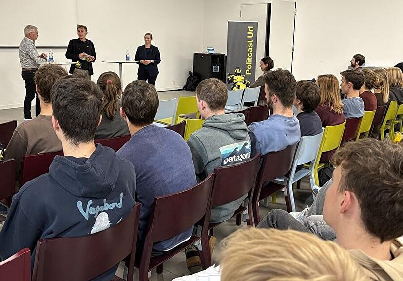 Am Morgen stellten sich Politikerinnen und Politiker den Fragen der Studierenden an der Kantonalen Mittelschule, am Nachmittag folgte das bwz uri. Mit Sicherheitsdirektorin Céline Huber und Bildungs- und Kulturdirektor Georg Simmen waren gleich zwei Regierungsmitglieder an den Polittouren vertreten. Nina Gisler (Vizepräsidentin der Jungen Mitte Schweiz) und Toni Brand (Landrat aus Silenen) berichteten ihrerseits über ihre Motivation, sich politisch zu engagieren.