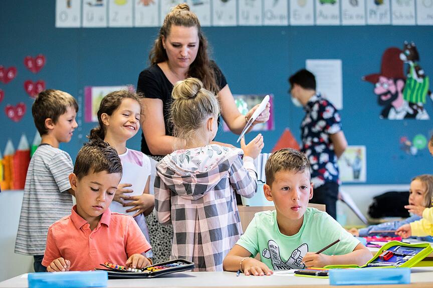 Nicht nur für die Kinder, sondern auch für die Lehrpersonen ist vieles neu. Während die Schüler als erstes die Hausaufgabenbüchlein und die Garderobenschilder beschriften und bemalen, erzählt Klassenlehrerin Sarah Estermann, dass dies normalerweise schon in der Schnupperlektion im Juni geschehe. Coronabedingt musste diese dieses Jahr aber abgesagt werden.