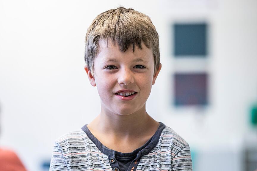 Joel freute sich auf den ersten Schultag – endlich kann er nach dem Corona-Lockdown und den Sommerferien seine Freunde aus dem Kindergarten wiedersehen. Er freue sich auch schon sehr auf die gemeinsamen Spiele im Sportunterricht, meint er.
