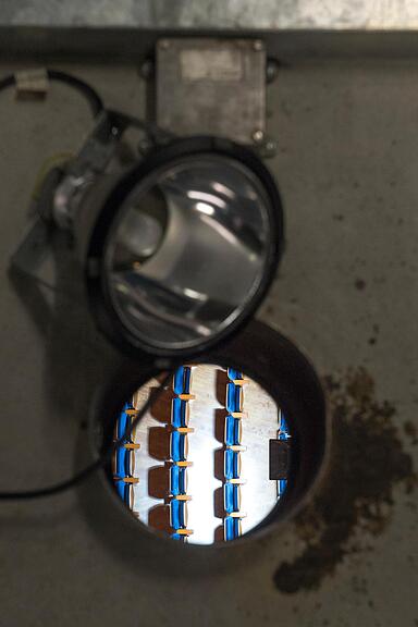 Wenig später schraubt Jürg Schär hoch oben auf dem Schnürboden eines der «Sternenlichter» auf und man blickt durch dieses weit hinunter in den Konzertsaal: