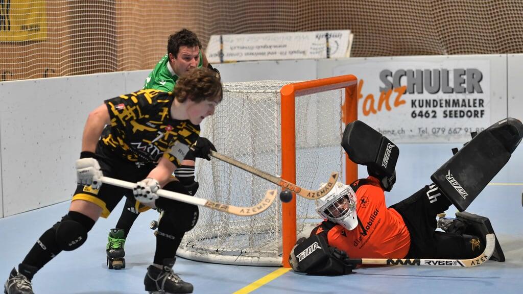 Im ersten Spiel des Jahres, das vor heimischer Kulisse in Seedorf ausgetragen wurde, stand der RHC Uri mächtig unter Druck. Die in der Nationalliga B an sechster Stelle klassierten Gastgeber brauchten unbedingt einen Sieg, um die Chancen auf den Einzug in die Playoffs, für die sich die besten vier Teams qualifizieren, zu verbessern. Fünf Runden vor Abschluss der Hauptrunde wies Uri einen Rückstand von sechs Punkten auf den viertplatzierten RHC Diessbach auf. Zu Gast war am vergangenen Samstag allerdings mit dem zweitrangierten RHC Vordemwald eine echte Knacknuss. In der Hinrunde hatten die Urner gegen die Aargauer mit 3:4 Toren den Kürzeren gezogen.