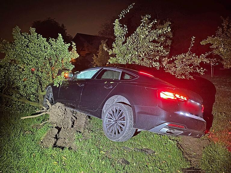 Das Auto zerstörte einen Baum