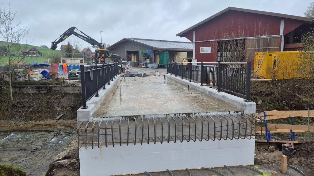 Die vorfabrizierte neue Rogeneu-Brücke sei mit einem Autokran an ihren definitiven Standort gehoben worden, schreibt ein Leser der Redaktion der Zuger Zeitung. «Ein fataler Fehler bei der Vermessung oder Herstellung der Brücke hat nun ergeben, dass die Brücke total schräg zur Strasse zu liegen kommt.» Passiere man die Brücke auf geradem Weg, lande man im Bach. «Eine Stützmauer entlang des Bächleins würde vielleicht Abhilfe schaffen, wäre aber vom Gewässerschutz her wahrscheinlich nicht tolerierbar», vermutet der Leser weiter. Wie es weitergehe, wisse er nicht. «Jedenfalls wurden die Arbeiten an der Brücke am Freitag eingestellt.»