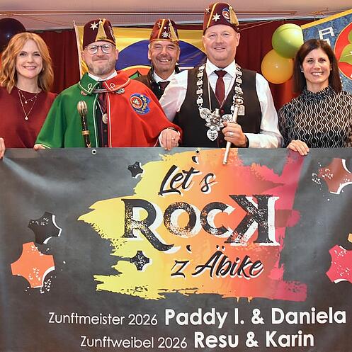 Musikalisch wurde dem Motto aber sowas von entsprochen: So zog die Chlöpfer- und Trychlergruppe Ebikon in Rockerkluft zu «Hells Bells» von AC/DC in den Seeburg-Panoramasaal ein. Oder dann löste die auf den Zunftmeister Paddy I. adaptierte Version des Queen-Stampfers «We will rock you», vorgetragen von Mitgliedern des Kinder-Grinden-Basteln, sofort rhythmisches Klatschen aus. Schliesslich sorgte die AC/DC-Tribute-Band High Voltage für den Sound zum Tanzbein schwingen. (hor)