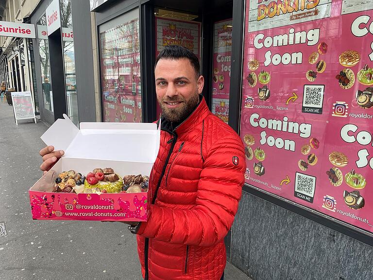 Wo bis vor kurzem das Fotogeschäft Ecker Kameras verkauft hat, gehen bald Donuts über die Ladentheke. Die aus Deutschland stammende Kette Royal Donuts plant an der Pilatusstrasse 5 ihre achte Schweizer und erste Luzerner Filiale. Eröffnet werden soll sie gemäss Franchisepartner Mustafa Hammoud «schon sehr bald» – das Datum steht noch nicht fest und wird auf ihrem Insta-Account kommuniziert. Warum Luzern? Der gebürtige Libanese sagt: