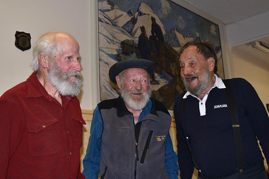 Von den drei Ehrenmitgliedern der Sektion war lediglich Ernst Zgraggen anwesend, Karl Gamma und Josef Clapasson mussten sich entschuldigen. Als Küchenchef verwöhnte Ernst Zgraggen mit seinem Team die Bergkameraden und Gäste mit Busecca, Braten und Polenta.
