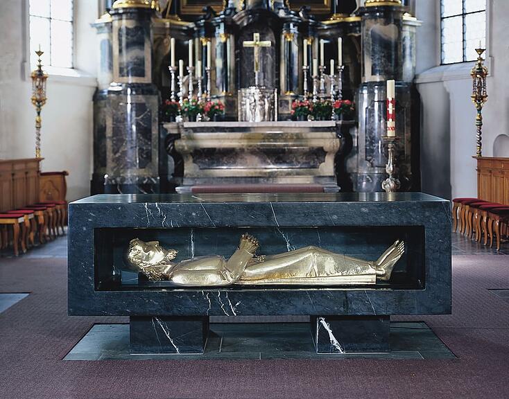 Der Volksaltar in der Sachsler Kirche zähle zu den bedeutenden Werken der sakralen Kunst des 20. Jahrhunderts in der Schweiz. Im Zentrum steht die silbervergoldete Liegefigur des Niklaus von Flüe, die zugleich als Sarkophag für seine Gebeine dient und durch ihre hohe künstlerische Qualität besticht.