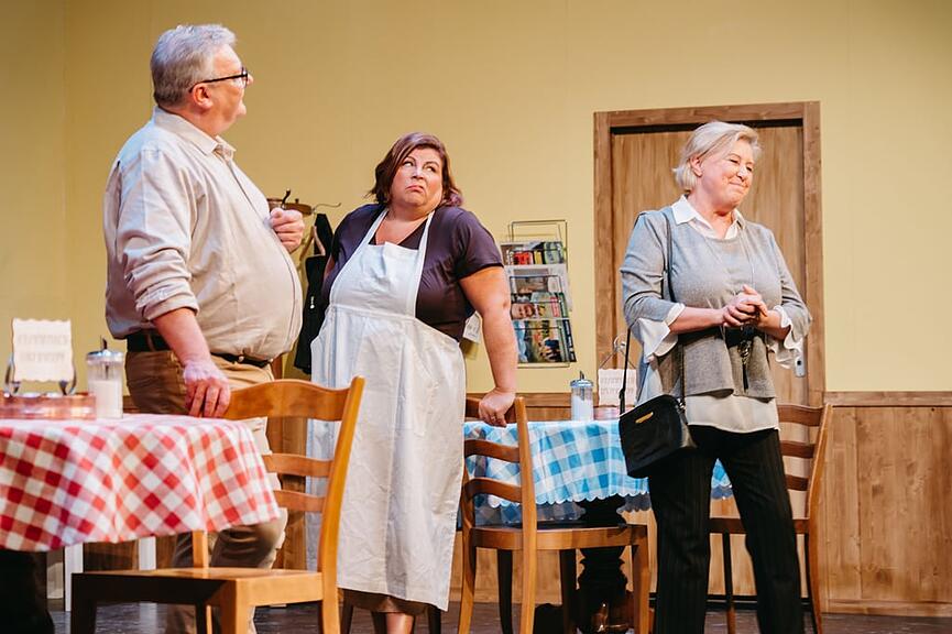Das HTK Theater Kriens beweist mit der neuen Produktion «Sag niemals nie» erneut, wie viel Spielfreude und Bühnenhandwerk in einer Laienbühne stecken können. Die Inszenierung unter der Regie von Monika Wanner entführt das Publikum in eine typisch schweizerische Landbeiz, so liebevoll und detailreich gestaltet, dass man sich am liebsten selbst ein Bier und ein Päärli Schweinswürstli bestellen möchte. Kariertes Tischtuch, Stammtischschild, Zeitungsständer – und durch das Fenster der Blick auf einen glitzernden See: ein Bühnenbild, das sofort Heimatgefühl weckt.
