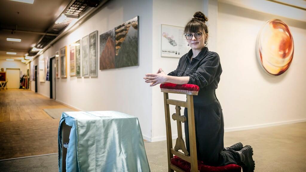 Wer sich vor der Galerie im Gang auf den kleinen Betstuhl niederkniet, erhält auf dem Bildschirm Anweisungen, wie man dereinst Erlösung findet. Aber nur, wenn man die «schlechten» Regeln des Systems befolgt, das heisst: Immer online sein, Daten sammeln, freigeben und Überwachung akzeptieren. Die Installation «Your AI God Speaks to you» gehört zur ersten Einzelausstellung der Zuger Künstlerin Sam Heller bei Billing, sie wurde am vergangenen Samstag eröffnet. In vier Werkgruppen widmet sie sich mit Installationen, Stickereien, Drucken und Gemälden einem globalen Thema – der Künstlichen Intelligenz (KI) – ernsthaft und doch mit einem Augenzwinkern.