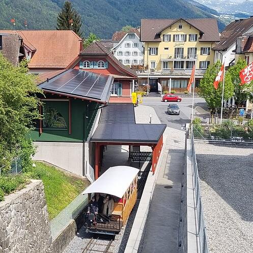 Ausschlaggebend für den Gewinn des Schweizer Solarpreises ist wiederum die «Remise», die angebauten Räumlichkeiten bei der Talstation der Stanserhornbahn, welche durch eine ausgeklügelte Solararchitektur und ein mehrschichtiges Energiekonzept überzeugt. (zvg)