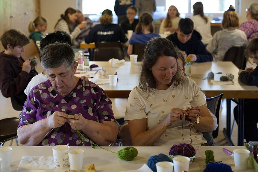 Das gemeinsame Stricktreffen bot nicht nur Gelegenheit zum kreativen Arbeiten, sondern auch zum geselligen Beisammensein: Bei Kaffee und Kuchen entstanden zahlreiche farbenfrohe Mützchen. Besonders erfreulich war, dass sich sowohl Anfängerinnen und Anfänger als auch erfahrene Strickerinnen und Stricker beteiligten, dies ganz im Sinne des Mottos: Jede Mütze zählt.