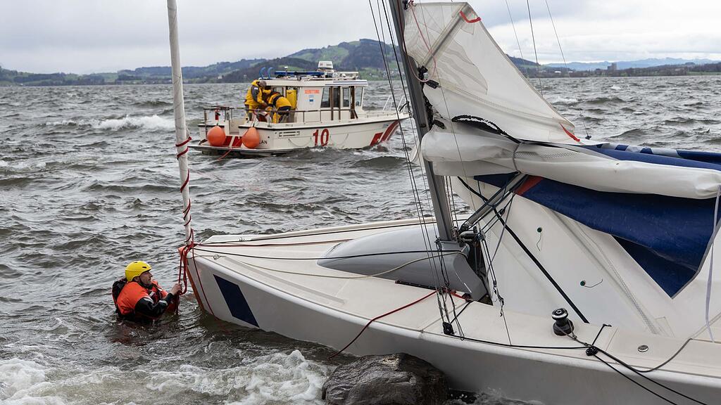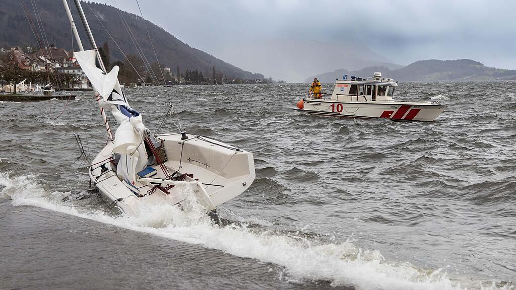 Die Seerettung der Freiwilligen Feuerwehr der Stadt Zug rückte wenig später aus. Der Segler konnte sich schliesslich selber retten: Bei der Katastrophenbucht wurde sein Boot gemäss einer Mitteilung der FFZ an Land gespült und der Bootsführer konnte sich in Sicherheit begeben.