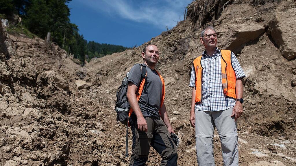 Die meterhohen Leitdämme aus gewaltigen Gesteinsbrocken muten in der Natur im Gebiet Hinterbergen hoch über Vitznau fremd an. Die Mauern wurden aus Material errichtet, welches am 1. Juni nach tagelangem Starkregen in Bewegung geraten ist. «In zehn Tagen wurde eine Niederschlagsmenge von 250 Millimeter gemessen, das ist sehr viel Wasser», ordnet Michael Rickenbacher ein. Der Geologe der Firma «Keller + Lorenz AG Luzern» ist ein Fachspezialist auf diesem Gebiet, er hat Erfahrung aus mehreren Ereignissen dieser Art gesammelt.